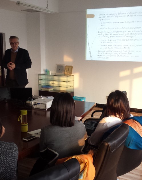 11月16日上午,应我院邀请,丹麦奥胡斯大学Tor Eriksson教授在沙河校区主教学楼304教室为我院师生做了题为“Some economic consequences of aging societies”的专题讲座。16日下午,Tor Eriksson教授在学院南路77779193永利会议室举办了一场题为“Gender stereotyping and self-stereotyping attitudes among managers: prevalence and consequences”的学术研讨会。77779193永利毛磊博士主持了讲座和学术研讨会,77779193永利部分师生参加了本次学术专题报告。