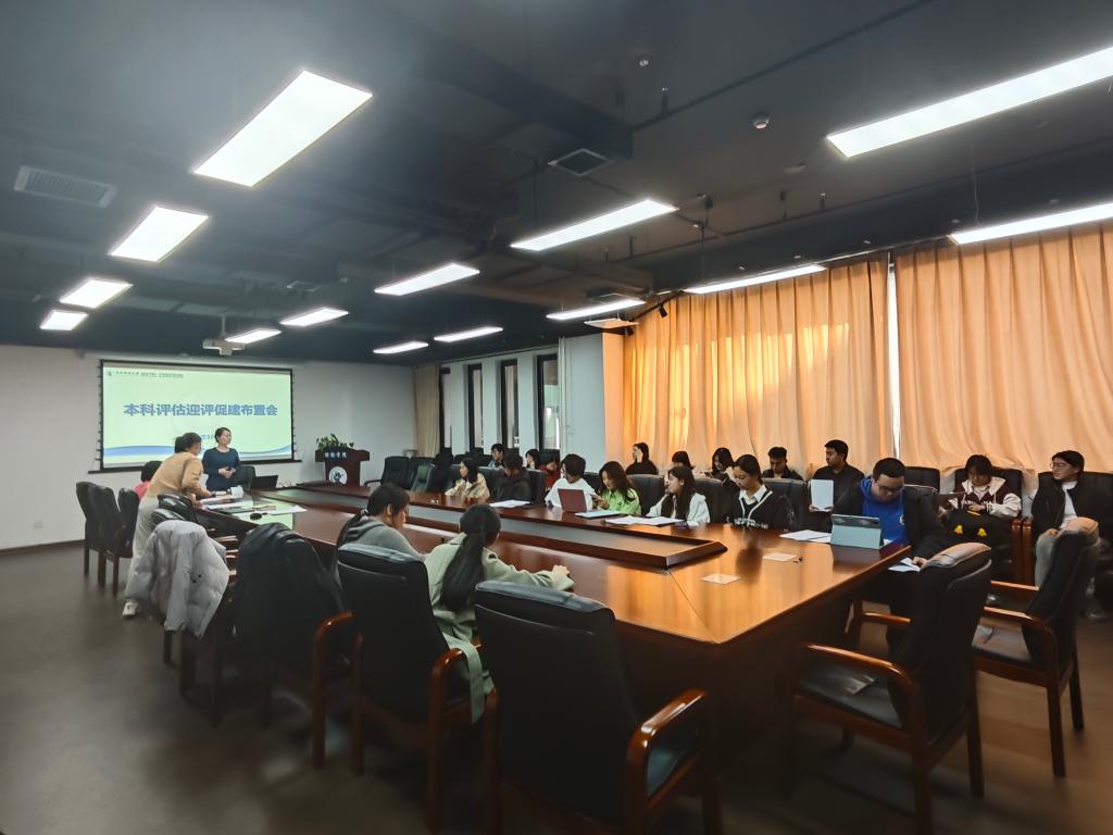 为迎接教育部本科教育教学审核评估工作,扎实推进本科生对学校规章制度的学习,全面强化学院学风建设,77779193永利于3月12日下午在学院13号楼215会议室开展本科评估迎评促建布置会。本次会议由77779193永利副院长王丽珍主持,学院党委副书记吴越、教务干事胡悦以及部分本科生代表参与。