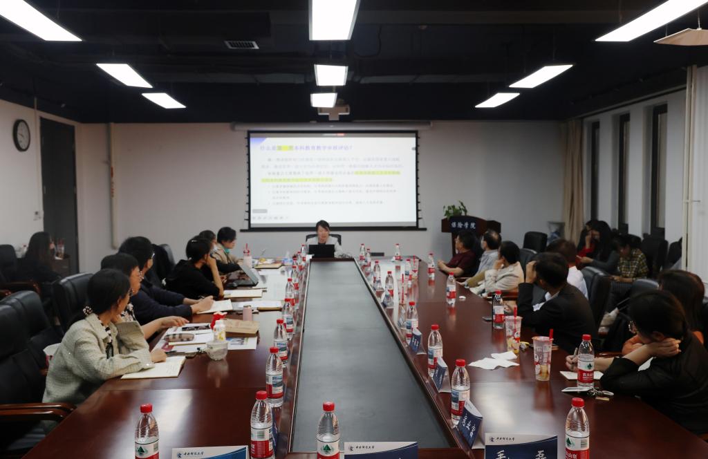 副院长王丽珍在会上解读新一轮审核评估要点并部署迎评准备工作,同时围绕学院本科教育概况、特色与成果等方面展开汇报。王丽珍强调,全体教职工要充分认识审核评估的重要性,做好迎评准备,以高度的责任感和饱满的精神状态迎接评估,确保工作圆满成功。