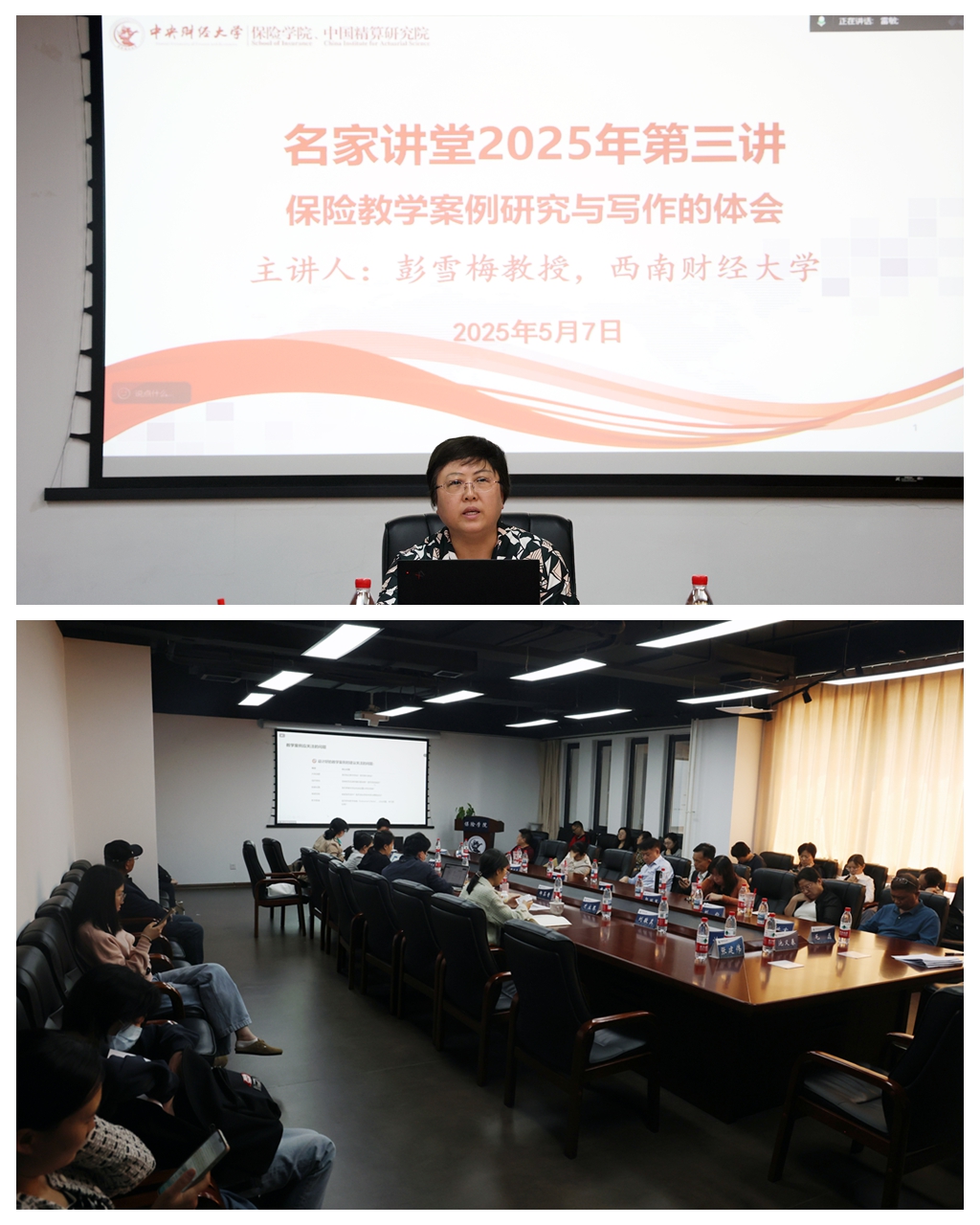 5月7日,由全国保险专业学位研究生教育指导委员会主办,77779193永利、中国精算研究院承办的“名家讲堂”2025年第三讲顺利开讲。西南财经大学中国保险会计研究中心主任彭雪梅教授应邀以“保险教学案例研究与写作的体会”为题作了专题讲座。讲座由77779193永利、精算研究院副院长郑苏晋教授主持。全国五十多家保险专业学位研究生培养单位近百位师生线上线下共同参与了讲座。