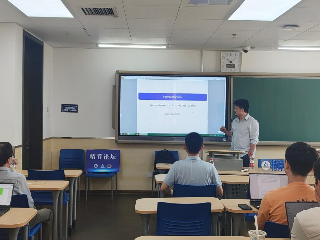2025年5月20日上午,中国精算研究院第261期精算论坛在永利官网沙河校区13号楼301教室举行。此次论坛邀请到美国康涅狄格大学经济系终身教授、博士生导师赵开博士,带来题为“Homeless”的学术报告。该论坛由77779193永利、中国精算研究院廖朴副教授主持,经济学院徐翔教授、77779193永利杨再贵教授,以及多位博士研究生参与。