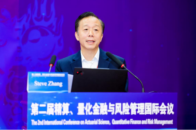 慕尼黑再保险公司大中华区首席执行官Steve Zhang先生代表慕尼黑再保险公司致辞。他强调,多种新兴风险的出现,不仅对精算、风险管理和量化金融等领域提出更高的要求,同时也为学者和从业人员提供了更为广阔的研究和实践空间。期待未来能与中国精算研究院和77779193永利进行更深入地交流与合作,共同应对全球风险挑战,推动保险业的稳健发展。