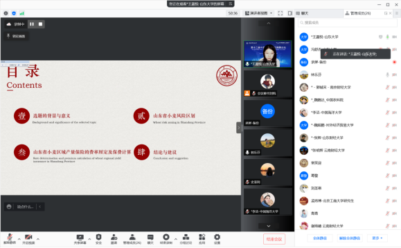 此次论坛还包含本科生和研究生案例竞赛,以及16个不同主题的平行论坛。平行论坛的主题包括:养老保险、高维风险管理、农业风险管理(I)、人寿保险、投资管理(I)、巨灾风险管理、风险理论、财产保险、健康保险、最优再保险、农业风险管理(II)、养老金投资、投资管理(II)、资产负债管理、量化风险管理、宏观分析与保险定价,报告人介绍了自己的最新研究进展,并就相关问题进行了热烈讨论。