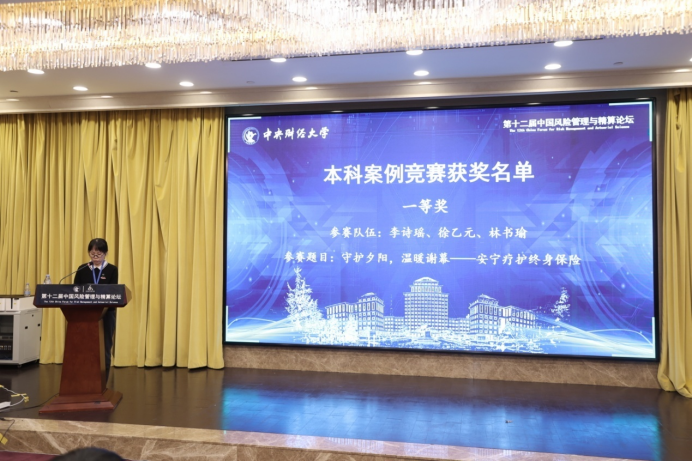 中国精算师协会教育考试部副主任贾巍宣读本科生案例竞赛获奖名单