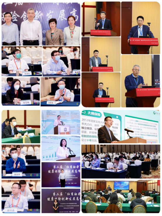 上海医保局副局长张超、天津医保局副局长高连欢、北京石景山区医保局局长李凤芹、鹰潭医保局局长万挺春等地区医保局领导,国家卫健委卫生发展研究中心健康保障研究部副主任郝晓宁、中国社会保障学会副秘书长严娟、复旦大学公共卫生学院教授应晓华、中国医科院医学信息研究所健康与医疗保障研究中心主任李亚子、中国财政永利集团院社会发展研究中心副主任朱坤、中国健康保障创新实验室特邀研究员唐晶、北京群畅健康管理应用技术研究院执行院长袁野等专家学者,以及中国人保财险、中国人寿、中国再保险、泰康养老、众惠相互等保险公司领导,镁信健康、圆心科技、商涌科技、福寿康医养服务公司等科技公司,辉瑞医药负责人,分别从理论研究与探索、创新实践、行业发展等角度,分享了在多层次医疗保障体系建设的国家战略下,基本医保与商业健康保险如何定位与协作,特别是城市定制型商业医疗保险、大病保险与长护险的商保经办、带病体保险创新,进行了充分的分享与交流。