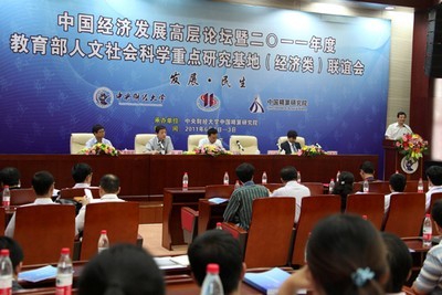 教育部社科司副司长张东刚教授、社科司规划处处长何健莅临指导,来自北京大学、复旦大学、浙江大学等全国各大高校二十多家教育部人文社会科学重点研究基地的主任及专家学者、我校校长王广谦教授、科研处处长孙宝文教授以及我院的专家学者近百人出席了会议。会议论坛以"发展和民生"为主题,共收到中英文征文近40篇。会议分为开幕式、基地主任工作会议和论坛报告会三个部分。