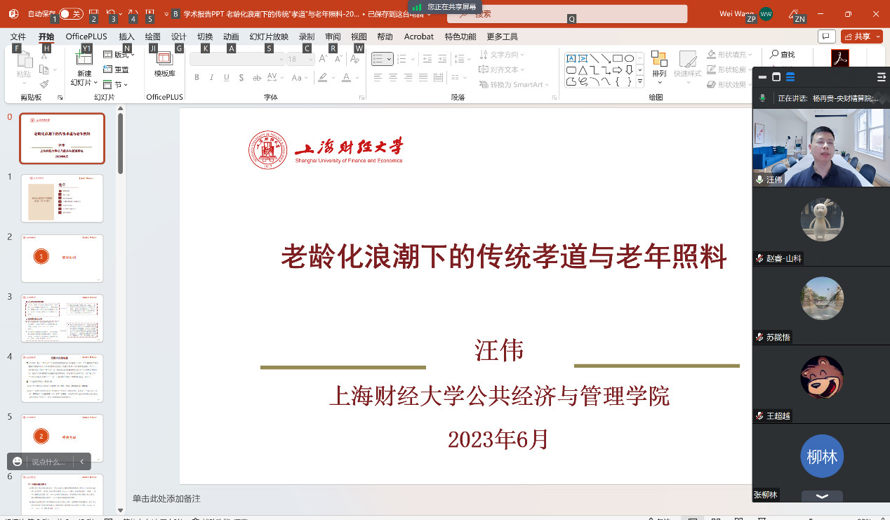 永利官网中国精算研究院于2023年6月26日邀请了上海财经大学公共管理学院汪伟教授做在线讲座。主题为老龄化浪潮下的传统孝道与老年照料。本次讲座由永利官网中国精算研究院杨再贵教授主持。