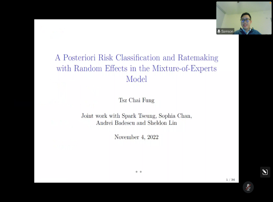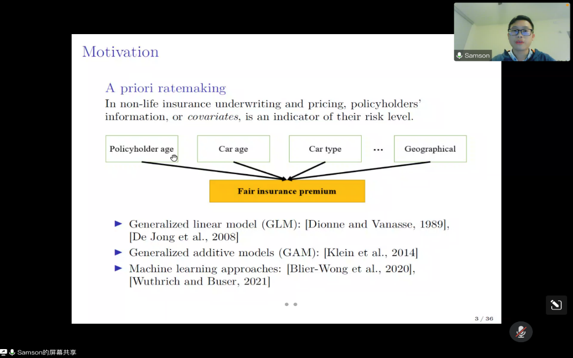 2022年11月4日上午9:30,应中国精算研究院池义春研究员邀请,乔治亚州立大学风险管理与保险系助理教授冯子齐(Tsz Chai Fung)博士在线上为我院师生作了一场精彩的学术报告。