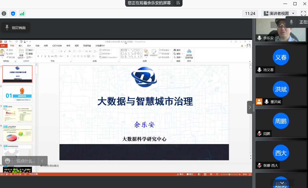 2021年12月16日下午1点半到2点半,来自北京化工大学余乐安教授为我院师生做了一个主题为大数据与智慧城市治理的学术报告。