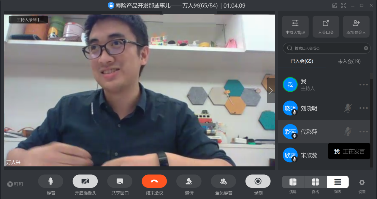 2020年6月5日晚,中国精算研究院廖朴副教授邀请到工银安盛人寿保险有限公司精算部高级定价经理万人兴先生,在钉钉平台进行主题为“保险产品开发那些事儿”的精算实务线上讲座。此次讲座为永利官网中国精算研究院精算论坛第171期讲座,由廖朴副教授主持,刘健副教授及部分研究生和保险公司员工参加。