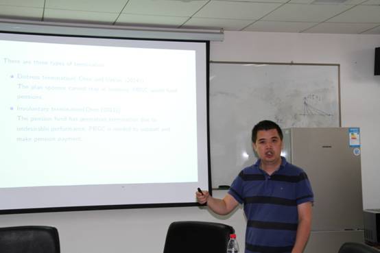 2018年7月2日下午2:30-3:30,华东师范大学钱林义教授应邀在中国精算研究院会议室(学术会堂506)为大家带来了的题为“Valuation of Risk-Based Premium of Private Pension Plan withTermination ”的报告,此次报告是我院第143期精算论坛讲座,周明副院长、池义春研究员、孟辉研究员以及部分研究生参加了本次的讲座。