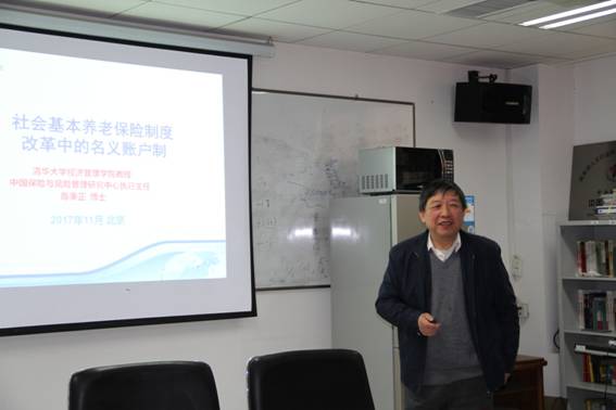2017年11月17日上午,清华大学经济管理学院中国保险与风险管理研究中心主任陈秉正教授,应中国精算研究院社保精算研究中心之邀在永利官网学院南路校区学术会堂506会议室举办了题为“社会基本养老保险改革中的名义账户制”的讲座。这是中国精算研究院院第112期精算论坛讲座。中国精算研究院、77779193永利等对社会养老保险精算感兴趣的老师和研究生听取了讲座并参与了讨论。