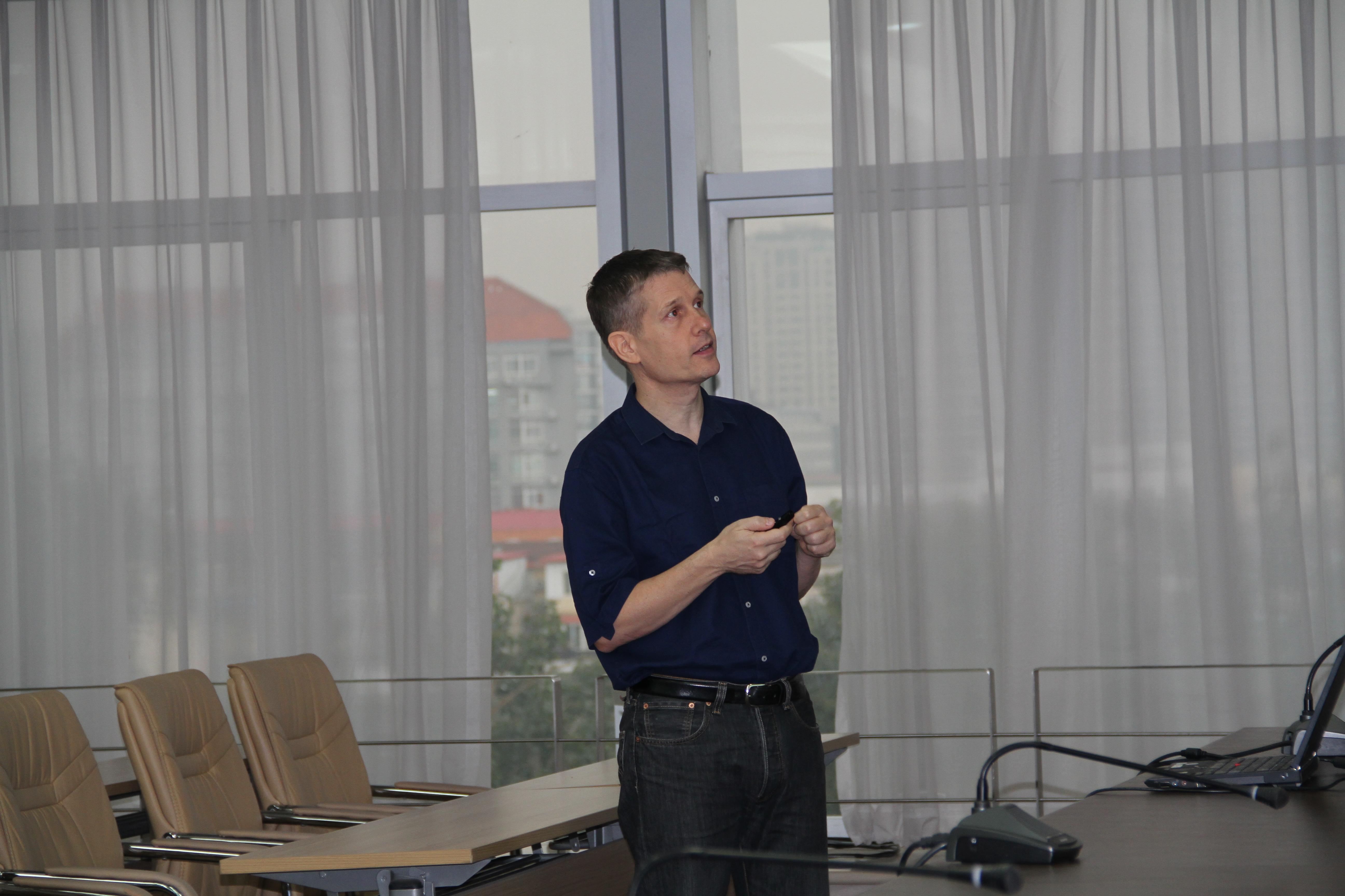 9月28日上午,新加坡南洋理工大学Nicolas Privault教授作为我院获得国家外专局资助的高端外国专家项目“金融数学方法在变额年金的定价与风险度量中的应用”的项目主要成员之一,应邀与以色列Haifa大学Udi Makov教授共同作为中国精算研究院第56期精算论坛讲座主讲人,在学院南路校区学术会堂706报告厅面向我校师生分别做了题为“Stratified approximations for the pricing of options on average”,“General approach to the optimal portfolio selection”的讲座。讲座由中国精算研究院韦晓副教授主持,部分精算研究院的老师、硕士博士研究生参与了研讨。