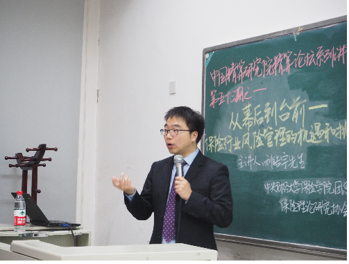 本次讲座紧抓精算与风险管理热点问题,内容丰富,主讲人刘皓宇先生风趣幽默,讲座内容引人入胜,这无疑为身处大学校园的我们提供了一次拓宽眼界,提高认识的宝贵机会,具有深刻的理论与实践指导意义。