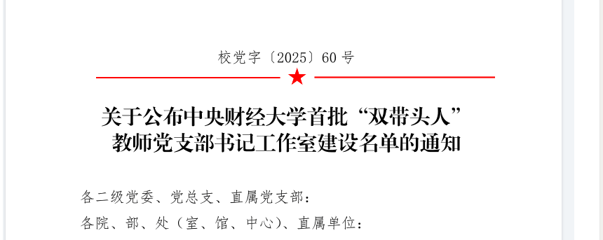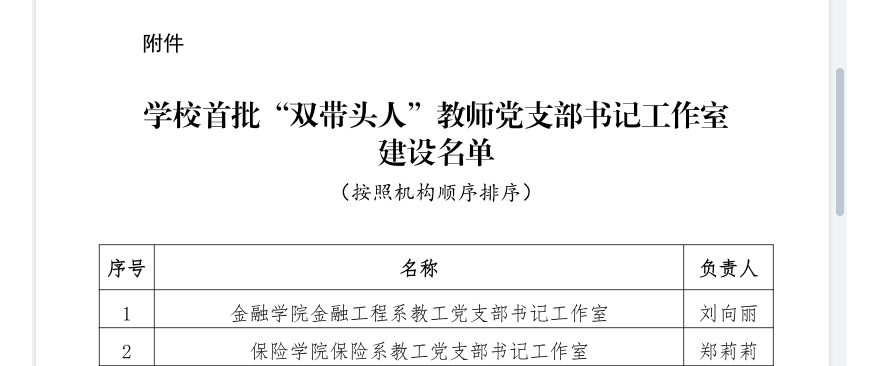 近日,学校公布首批“双带头人”教师党支部书记工作室建设名单,我院保险系教工党支部书记工作室成功入选。